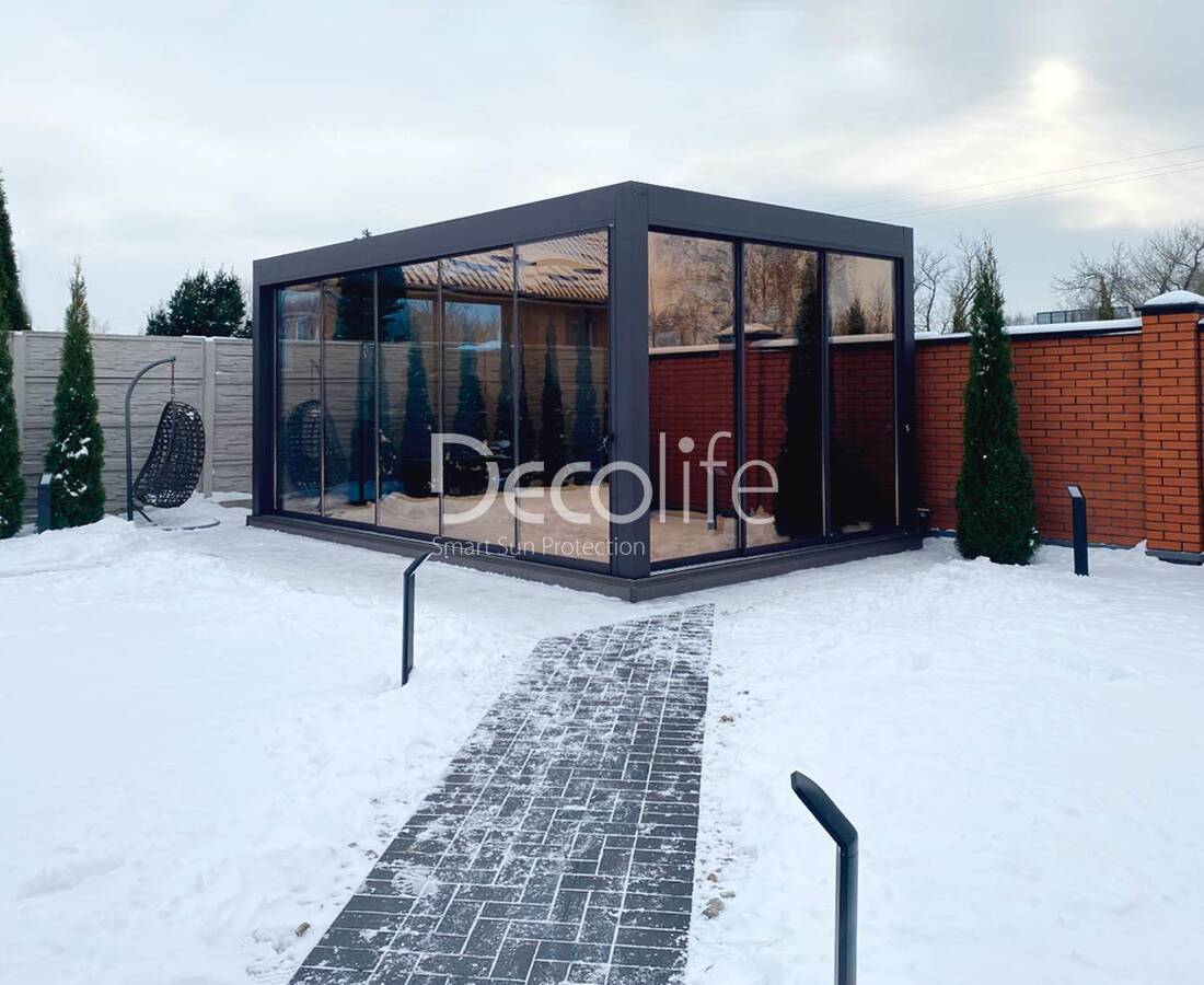 Пергола биоклиматическая Decolife B500-25П + Безрамное остекление S100 - Крым