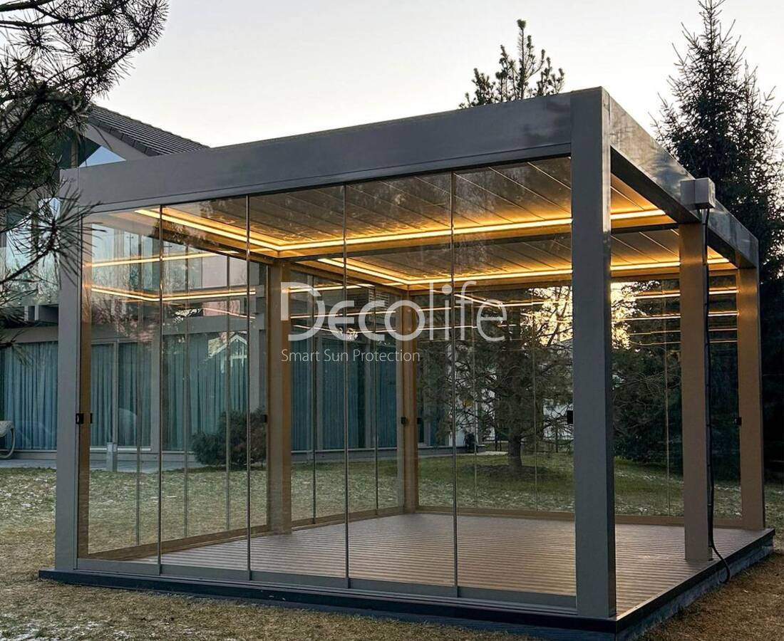 Пергола Decolife Bioclimatic B700 + Раздвижное остекление S200 - Ленинградская обл, КП Osko village