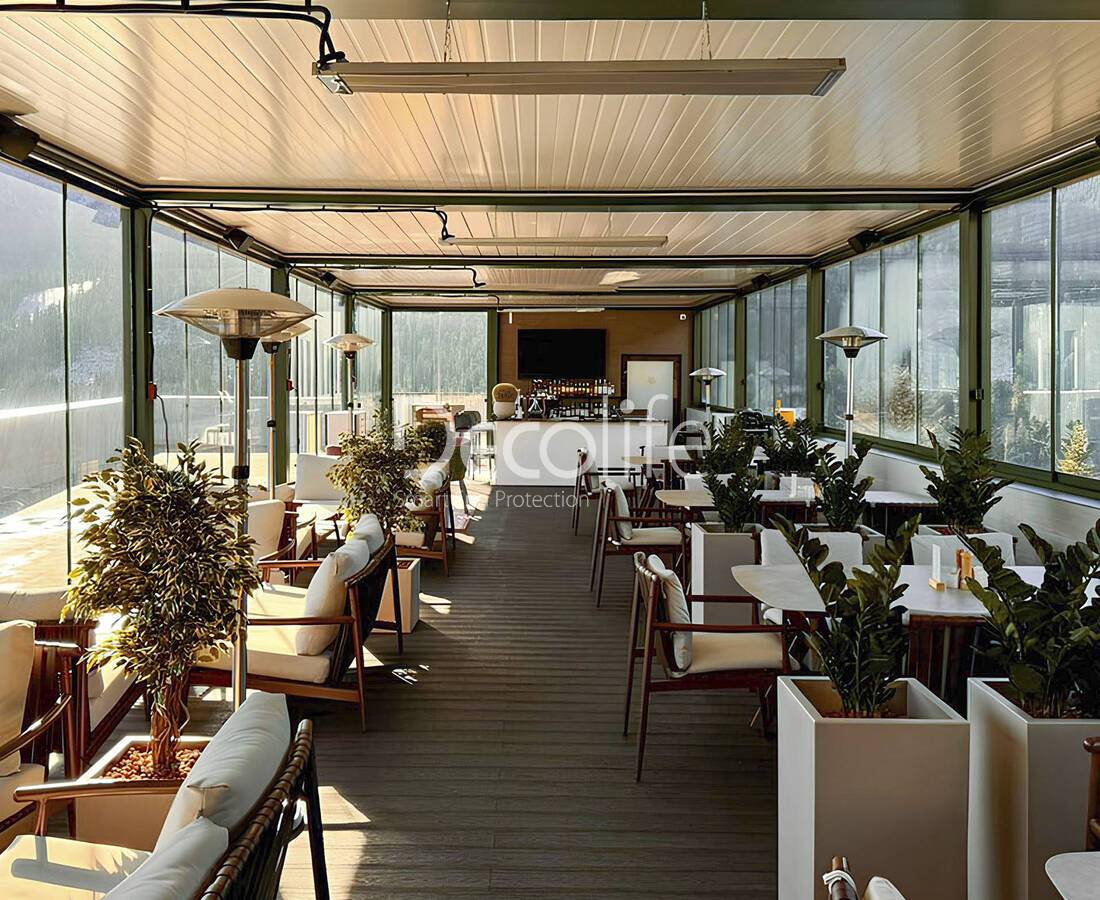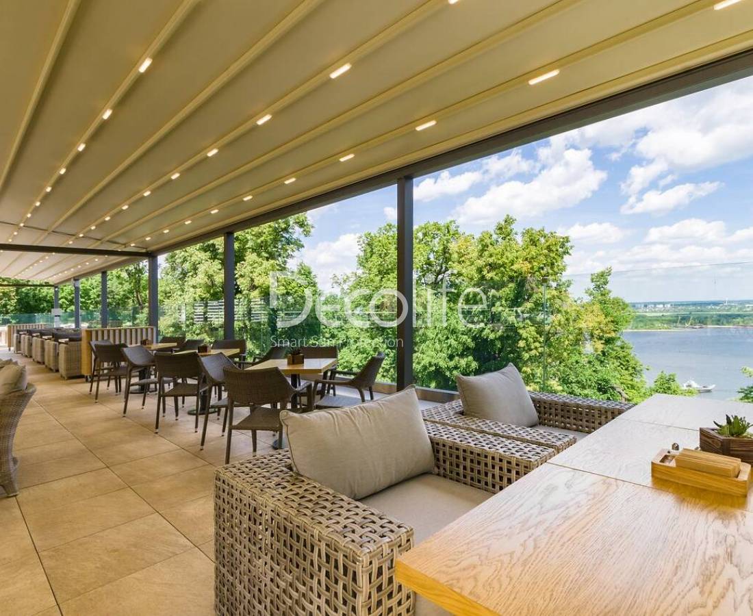 Пергола Decolife Project Light Twin + Безрамное остекление S100 - г. Нижний Новгород, Ресторан "Шатфорд"