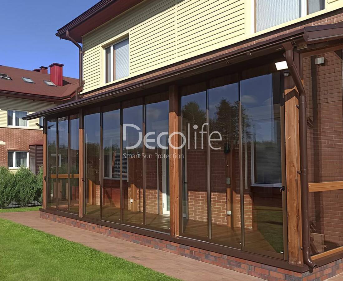 Для адаптации к конкретной веранде или другому пространству подбирается оптимальное число панелей. Такие системы удачно дополняют перголы Decolife, стильно выглядят, их легко поддерживать в чистоте.